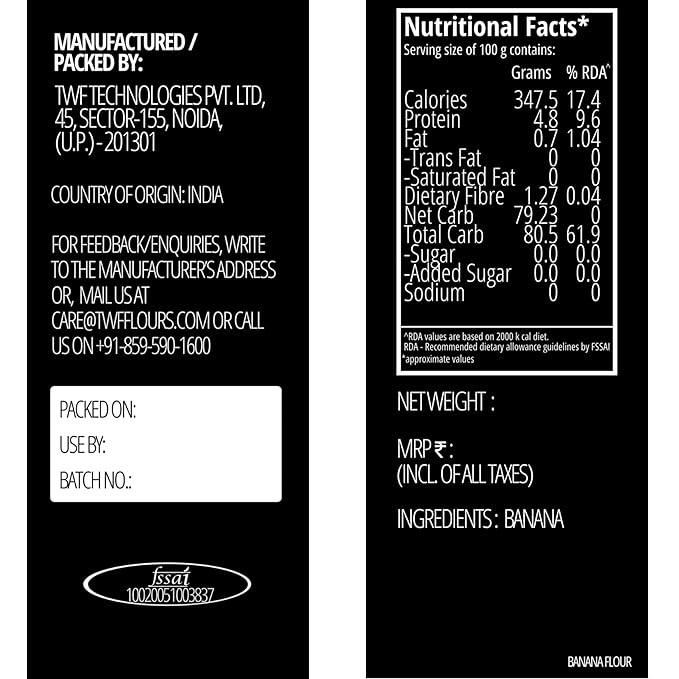 Natural and Pure: Made from 100% green bananas, offering a mild and neutral flavor suitable for sweet and savory dishes.