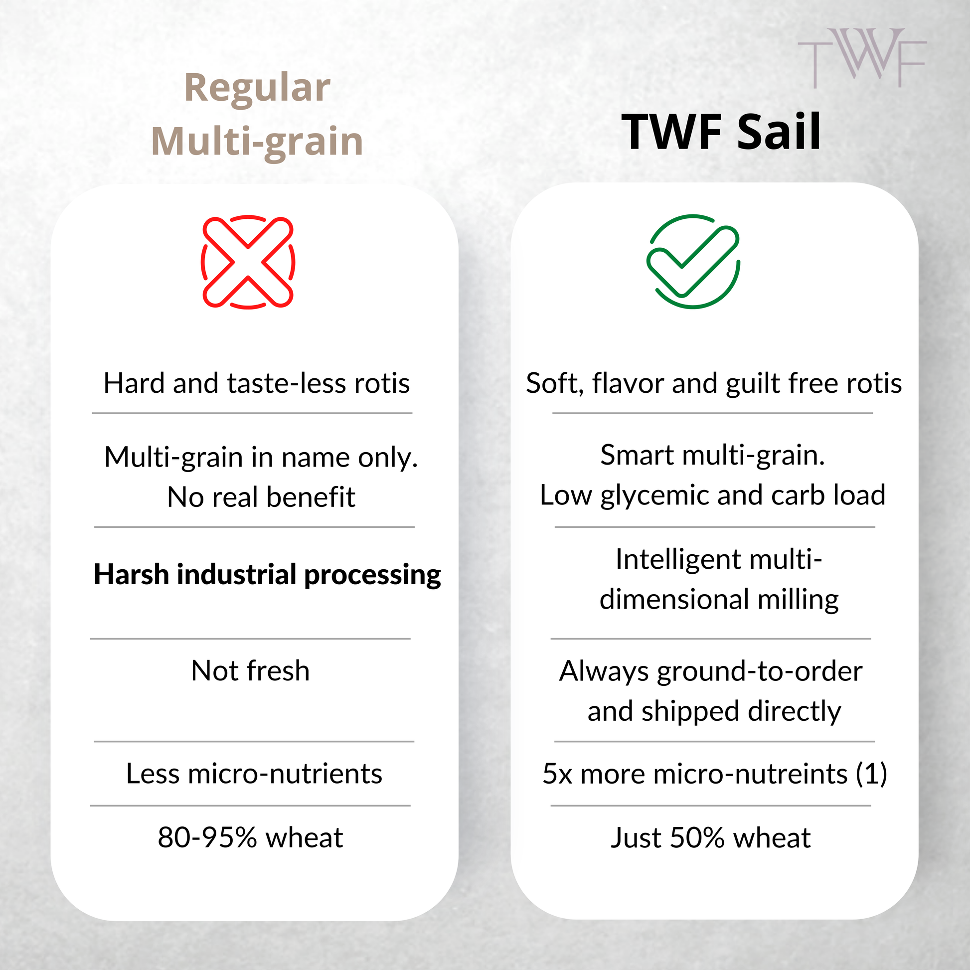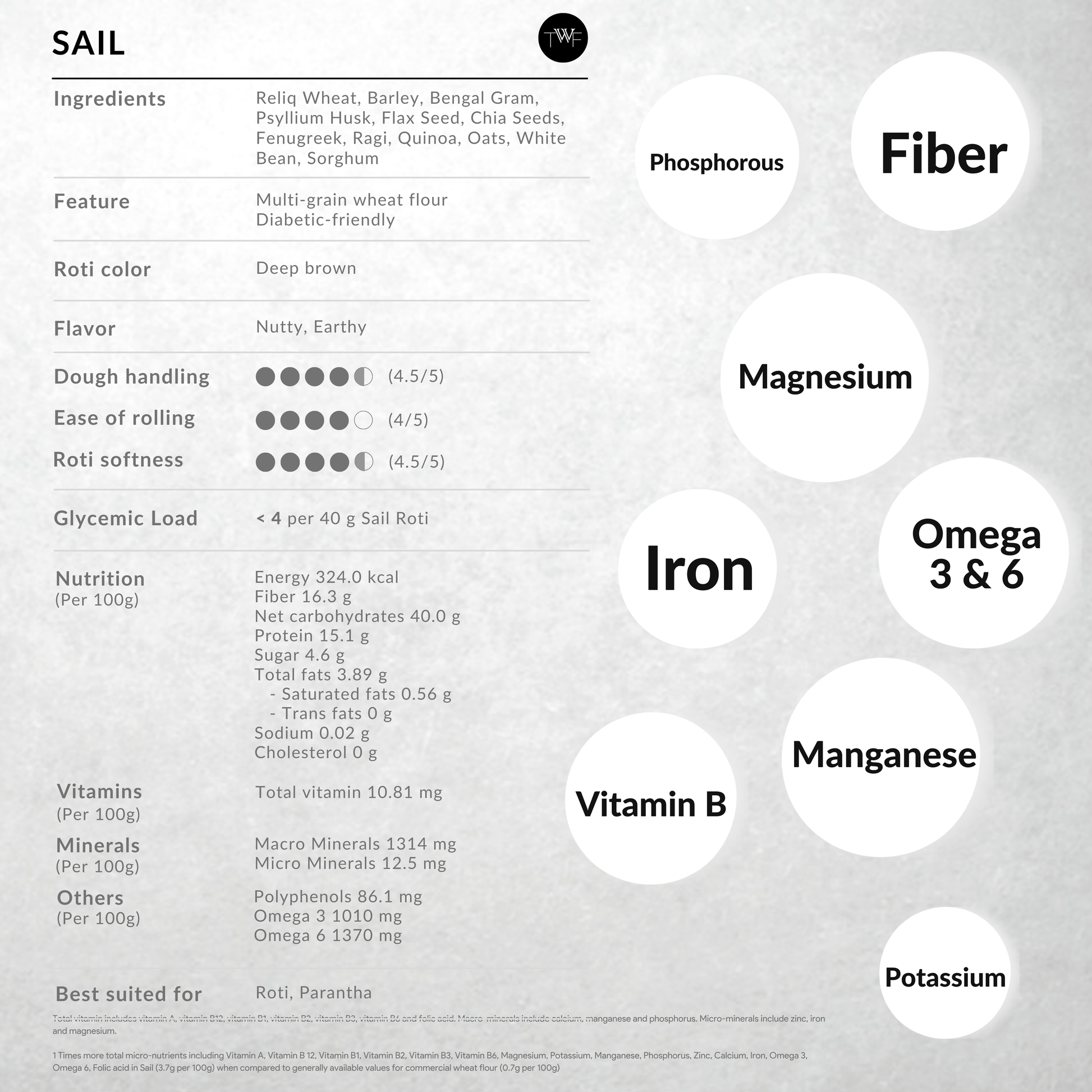 Sail is an intelligent blend of carefully curated grains, nuts, and seeds that turn your everyday roti into a superfood.