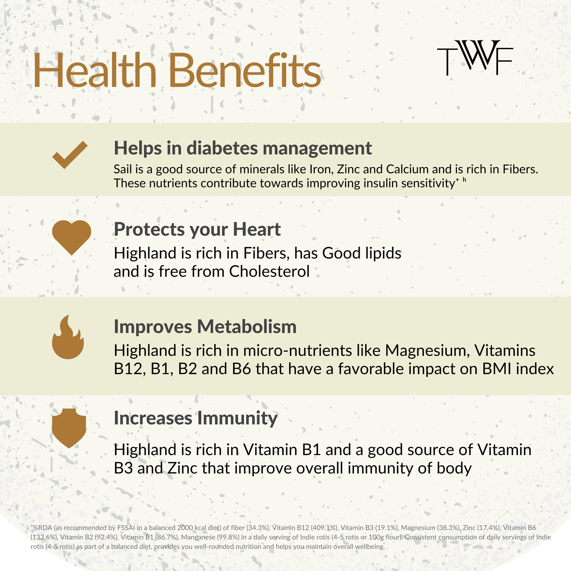 Consistent consumption of daily servings of Sail rotis (4-5 rotis) as part of a balanced diet, provides you well-rounded nutrition and helps you maintain overall wellbeing.
