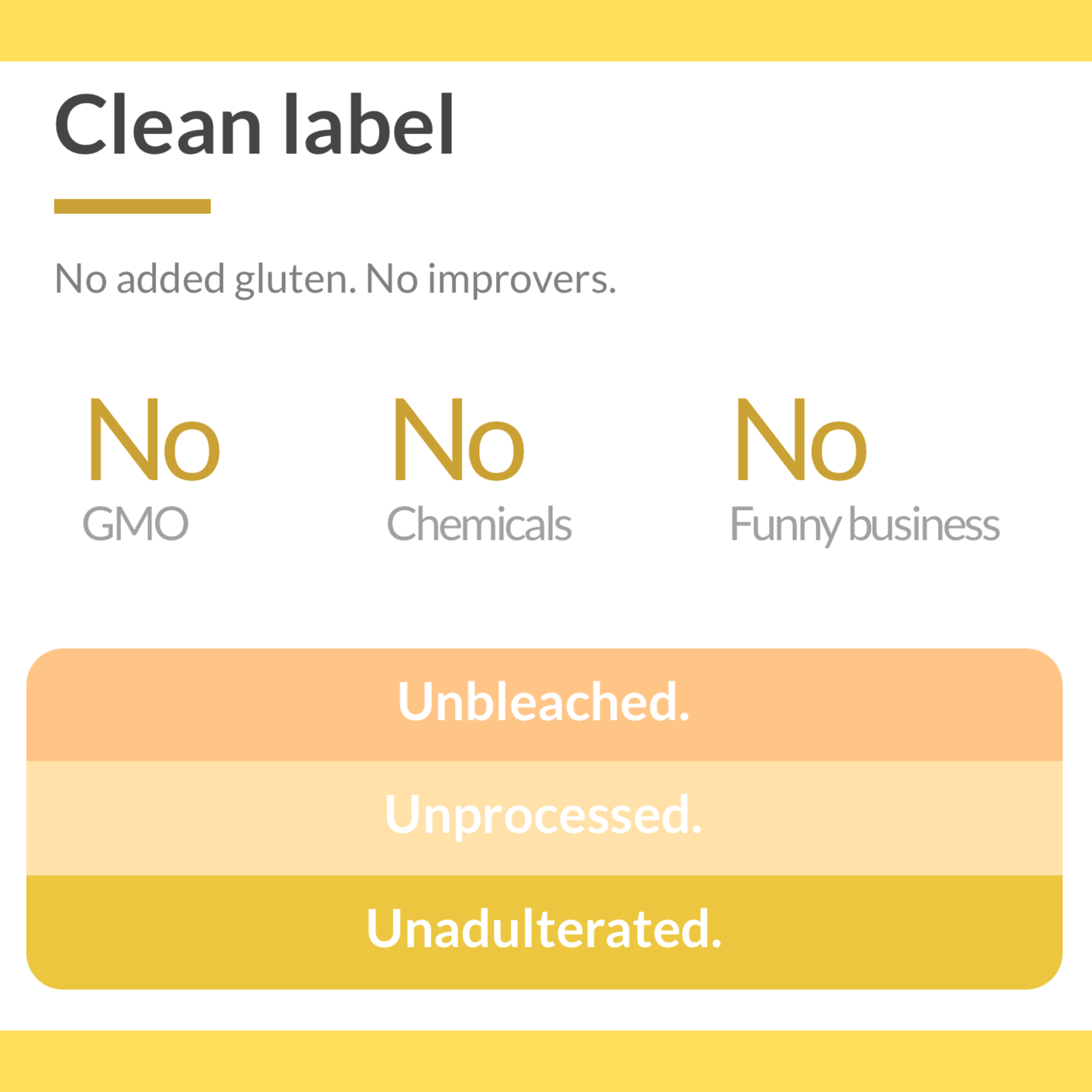 No GMO. No Chemicals. No Added Gluten. No Bleach. No Preservatives