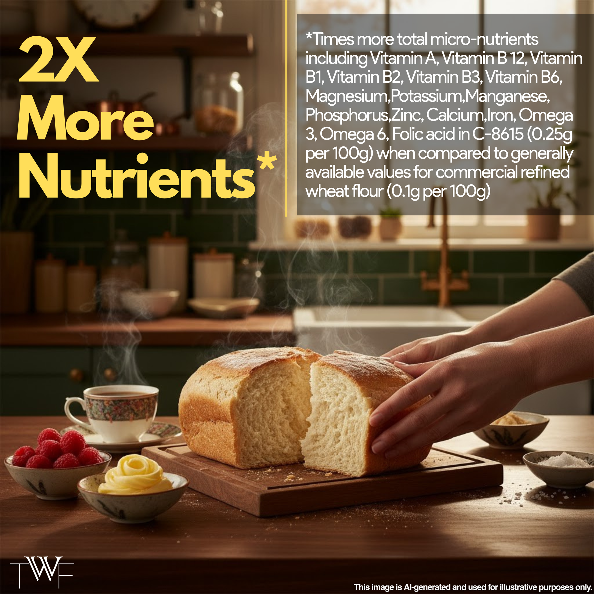 TWF's C-8615 is a purpose crafted alternative for maida/APF. 8615 blends together multiple grains and seeds to give your breads a more wholesome character - both in terms of flavor and nutrition.