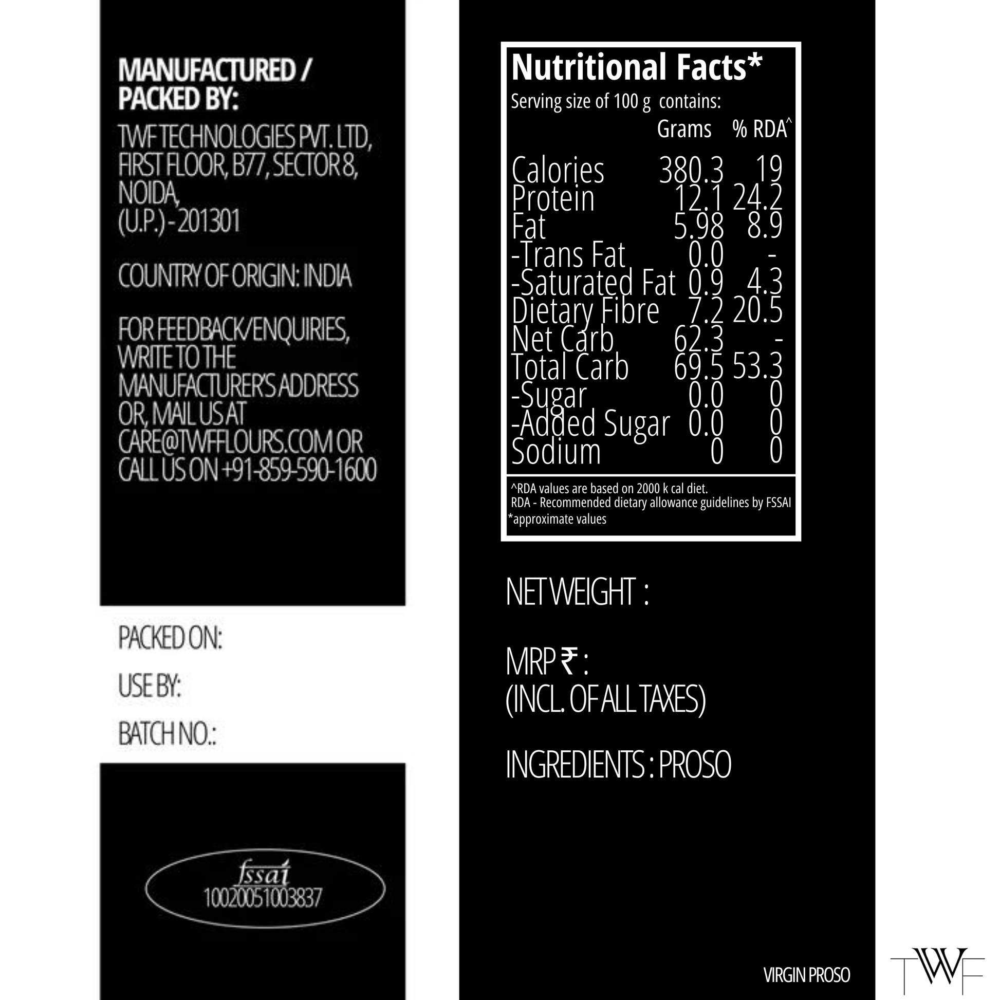 Virgin Proso Millet Flour is made from 100% virgin proso grains, carefully selected for their purity and nutritional benefits. These grains retain all their natural goodness, making them an ideal choice for wholesome, nutritious meals. The flour is ground fresh after your order to ensure maximum freshness, flavor, and nutrient retention, offering you the highest quality flour for your baking and cooking needs.